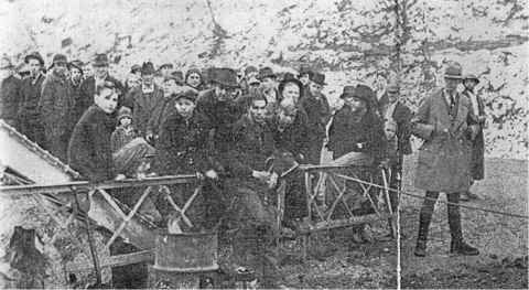 A frenzied crowd gathered quickly after news spread that the mine had blown. Only one phone to the outside world was working after the blast, and it took two hours to restore service. This added to the chaos, because police could not be called for crowd control. Men were running around searching for equipment, and cursing the events and the weather. Screaming women and children rushed to the mine shaft getting in the way of workmen. School buses soon began arriving unloading high school and elementary school children, and some of them went to the scene before going home. Agnes Monaghan, age fifteen, stood vigil for her widowed mother. Her brother, Pat was one of the victims, but brother Joe was spared as he was not at work. It was estimated that a crowd of almost two-thousand people congregated by nightfall on the first day.