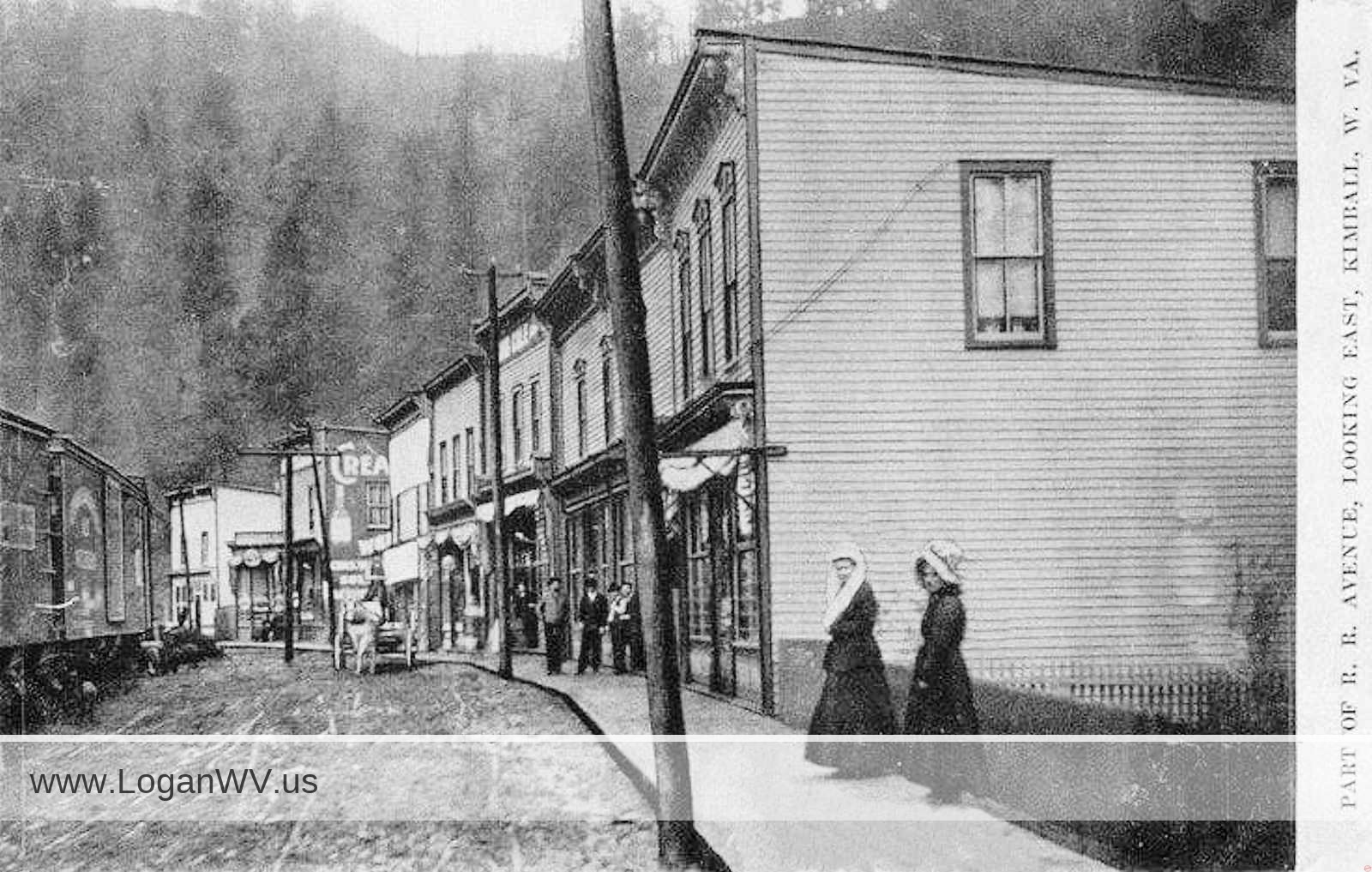 Old postcard of street scene in Kimball, WV. Image 9483.